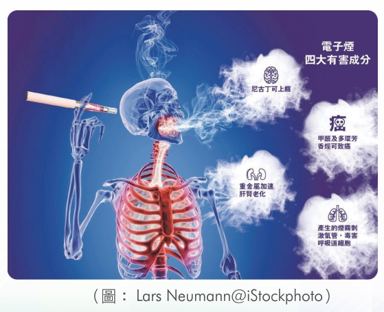 生理上,電子菸所產生的氣溶膠可能引發嚴重的肺部疾病,而毒品則直接破壞身體器官機能。